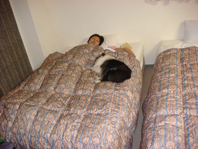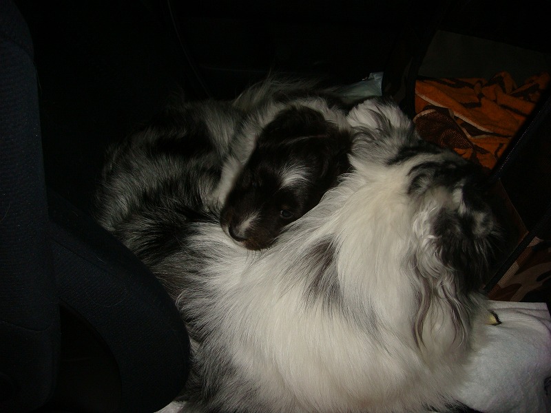 ソフィーちゃんは絶対みにらさんと寝ないって言ってたけどちゃんと寝てました(*^^)v 7時に朝のバイキング行って帰ってからワンコ達のトイレ 荷物の整理して車に積み込み四国インターに行く準備が整って さあ出発って時に またまたまたまたcheri_blueさん やってくれました!!! 今度は車のキーが無い って~(-_-;) なんでー車開いてるじゃん!!! でも無いらしいって探してたらあって良かったんだけど・・・ 部屋のキーを返しに行ってなかなか戻ってこないので私とkicocoさんと先に行くよ~って出発したら電話かかってきてホテルのとこから出れないって・・・(-_-;) なんで~昨日来た道を戻るだけなのに~ 不思議なcheri_blueさん やな~(;一_一) でも私達がコンビニで休憩してる間に追い抜かされてた~ 着いたらほぼすぐシェルティの審査だったのでデジカメで動画撮ってきました(ビデオカメラ持って行ってたのに) パドックに行くと2年振り振りのエドさんがポッポちゃん と 初めましての福島さん(レナちゃんの耳セットでお世話になりました) 初めましてのフィー母さん、フィーちゃん、ペコ母さん、ペコちゃん(写真撮るの忘れたー) みんなでお買い物に行っていっぱいのおやつや色んなもの買いました ウインディちゃんG2で頑張ってたよ~ 最後はみんなでうどんを食べに行こうって行ったけどえらい行列で食べるのは断念、生うどんを買って徳島港へ ちょうどいい時間に港に着きました テラちんは朝食べただけだったのでフェリーの中で食べて一眠り 帰りはちょっとうねりあったみたいだけど船酔いの薬(結局cheri_blueさん買ってくるの忘れたのでフィー母さんが買ってきてくれた。ありがとー)飲んでたので快調な2時間だった~(*^^)v 今回は写真をほとんど撮ってない(動画を撮って充電がほぼなくなった) フェリーが和歌山港港に着いて車で出るのをまってる時これだけ撮った ママに甘えてます フェリーを降りてライを迎えに行き行き帰ってきてすぐお風呂に入りました なんだかしらないけど髪がバリバリになって手櫛も通らんの((+_+)) 今回のぷちオフ会写真がすくないけど撮る間もなく楽しんだってことで・・・ やっと今日からスッキリ疲れがとれた感じ~