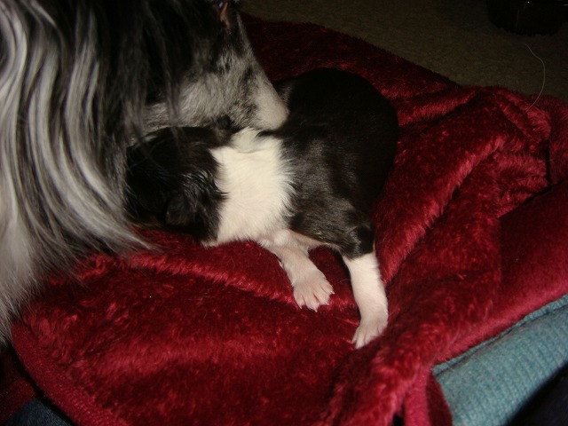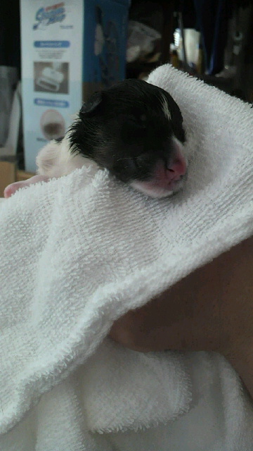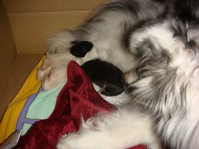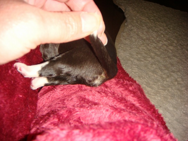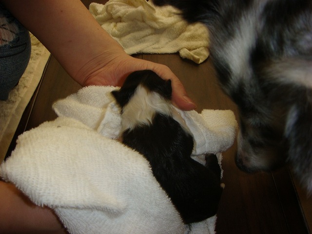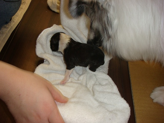 昼過ぎ様子がおかしいので病院はどうしようかとのんぴー(友達の子で動物病院の看護師、今日有休でお休み)に電話して聞いたら今日来ることになってたはずって言われたのでどうしたものか二人で話してたらのんぴーも病院一緒に行くことになり三時半頃来てくれた。 で来てくれたもんでまーちゃん飛んでワンワン興奮してて落ち着いたら気張ってる・・・ 二人で観察してたら五分おきくらい のんぴーが院長先生に電話したら破水してないのならまだまだで破水してから来るように??? のんぴーがちゃんと聞こえなかったらしくどうなったら行ったらいいのかわからんままに あと少し仕事残ってたのでのんぴーに見ててもらい仕事を済ませ見ててふいに尻尾をあげてみたら何か出てる二人して見直してみると(逆子)胸まではでてきてるが頭がのんぴーが病院に電話しながらベビー持ってたら 出たー それから まーちゃんはちゃんと処置し舐めまわすもんだからベビーが転がる転がる 無事に産まれて安心してたのだが二人してまた不安が・・・ 後ろ足の血色が悪い・・・ カイロをタオルハンカチにつけてしばらく包んで温めた。 少し色が戻ってきたのでまーちゃんにつけてタオルハンカチをかぶせておっぱいを飲ますがまーちゃんが舐めるのに邪魔らしくどけてしまうから のんぴーがまーちゃんごと毛布みたいなんで覆ってくれた 忍者ブログ [PR]